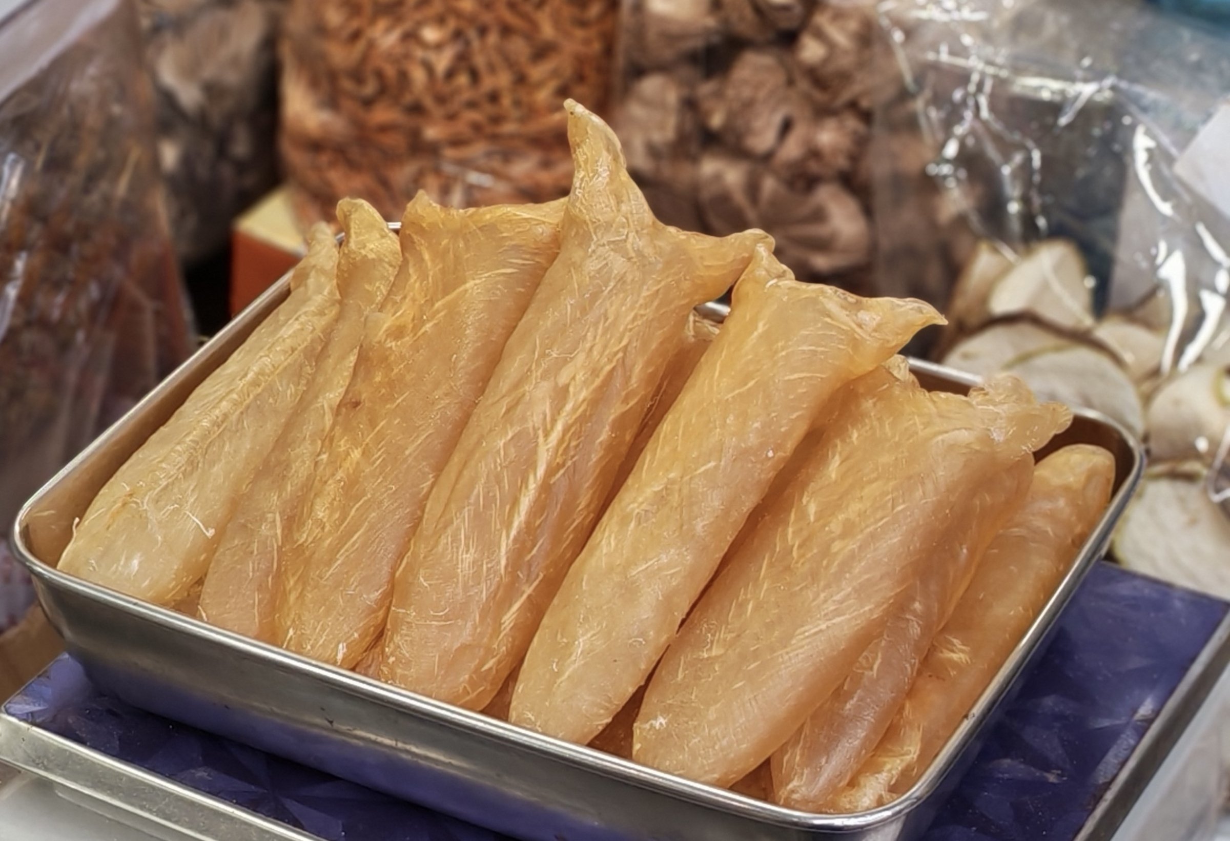 花膠,又稱魚肚,乃中華飲食文化中備受推崇的傳統滋補食材,素有「海八珍」之一的美譽。成魚肚作為花膠中的上品,精選成熟魚類的魚鰾,經傳統工藝剖制、清洗、晾曬而成,質地厚實,膠質豐富,色澤金黃透亮,無論是用於家庭煲湯、酒樓宴席,還是滋補養生,皆能展現其獨特魅力與價值。以下將從產品特性、應用場景、核心賣點等多角度,為您詳述成魚肚的非凡之處。 成魚肚的最大特點在於其天然、純淨的製作工藝。精選優質海域的成年大魚,取其新鮮魚鰾,經手工清洗後,採用自然陽光曬乾,全程無添加任何化學漂白劑或防腐劑,確保每一片成魚肚都保留最原始的海洋風味與營養精華。成品呈淡黃色至金黃色,表面略有光澤,質地堅韌而不失彈性,入水後迅速膨脹,煮沸後膠質溶出,冷卻即成晶瑩剔透的膠凍,口感滑嫩,膠香濃郁,是中餐高檔食材中的佼佼者[1]。 成魚肚富含高品質膠原蛋白,屬於高蛋白、低脂肪的健康食材,非常適合現代人追求營養均衡的飲食需求。膠原蛋白是維持皮膚彈性、關節健康的重要物質,常食成魚肚有助於滋養肌膚、延緩衰老,尤其受到女性及中老年消費者的青睞。此外,成魚肚性味甘平,歸腎、肝經,傳統中醫認為其具有補腎益精、滋養筋脈、養血止血、散瘀消腫等功效,對於產後調理、體虛乏力、腰膝酸軟等症狀,亦有輔助改善的作用[1]。 在烹飪應用上,成魚肚堪稱百搭食材。最經典的吃法是將其用清水泡發後,與雞肉、豬骨、花菇、紅棗等食材一同燉煮,湯色金黃透亮,膠質濃郁,入口即化,既美味又滋補。粵式老火湯、閩南佛跳牆、潮州翅肚羹等名菜,均以成魚肚為核心食材,彰顯其尊貴地位。除煲湯外,成魚肚還可紅燒、燜煮、涼拌,甚至作為火鍋配料,吸飽湯汁後口感更為豐盈,滿足不同人群的口味需求[5]。 成魚肚的選購與保存亦需講究。優質成魚肚應